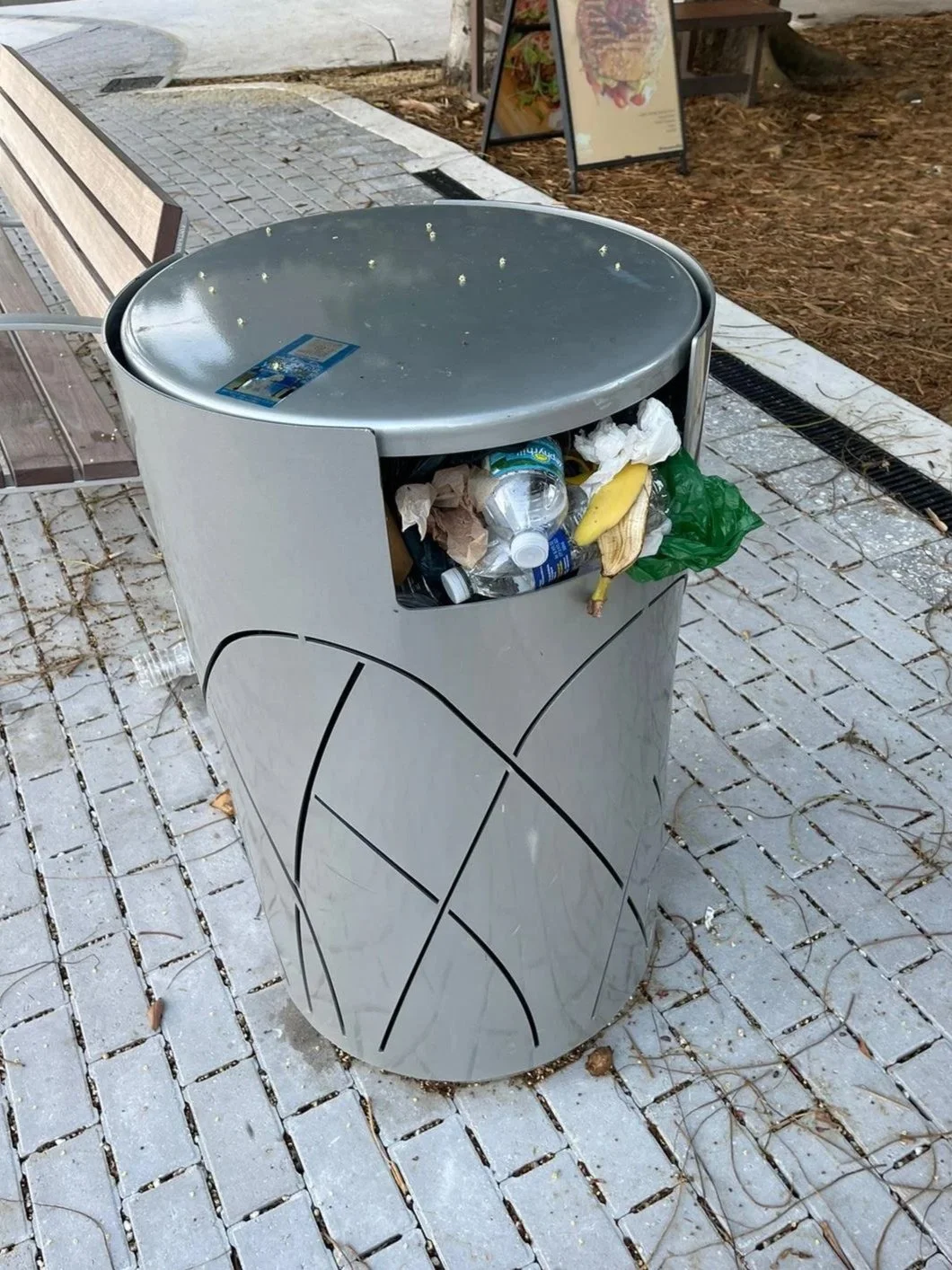 At first, there were two receptacles placed along this stretch of the Baywalk, seemingly adequate for the steady flow of pedestrians, office workers, residents, and visitors. However, as usage increased, so did the volume of waste. Overflow became a recurring problem, raising concerns from residents and adjacent property owners.