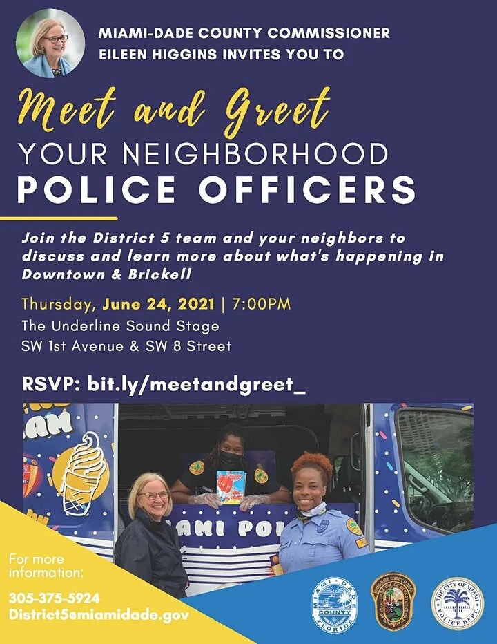 The City of Miami Police Departmentand Miami-Dade County Police Department will join forces for a discussion about what’s happening in the Downtown Miami and Brickell neighborhoods on June 24 at 7pm at the Underline Sound Stage, SW 1st avenue and SW 8th street.