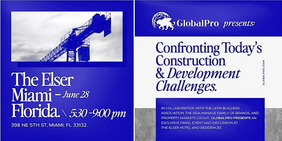In collaboration with The Latin Builders Association, The RealManage Family of Brands, and Property Markets Group, GlobalPro presents an exclusive panel event and discussion at the Elser Hotel and Residences.