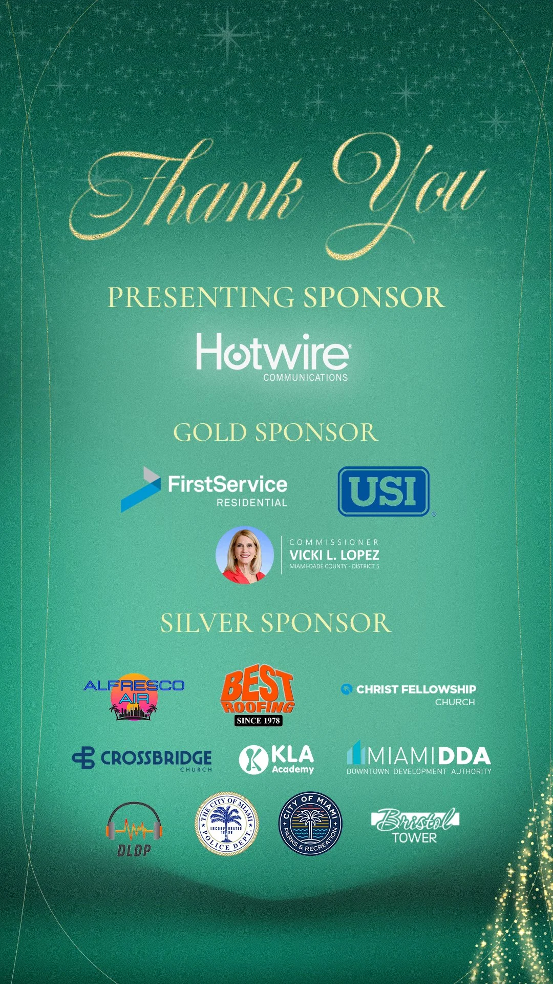 We were grateful to celebrate in partnership with our Gold Sponsors — FirstService Residential and USI Insurance Services, and Commissioner Vicki Lopez — whose support helped make the night truly memorable. A heartfelt thank you as well to our Silver Sponsors — Alfresco Air, Best Roofing, the Historic Christ Fellowship Downtown Church, Crossbridge Brickell, KLA Schools, the Miami DDA and our community supporters Gordon Schools Miami and the Miami Police Department. Your continued commitment to Brickell families is felt in every detail of this event.